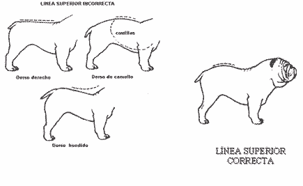 Cuerpo Línea superior: Cae levemente hacia la espalda detrás de la punta de las escápulas (ésta es la parte más baja) desde donde la espina sube hasta el lomo (punto más alto que la cruz), curvándose nuevamente más repentinamente hacia la cola, formando un leve arco, una característica distintiva de la raza.