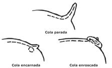 Cola: De inserción baja, saliendo más bien derecha y luego volteándose hacia abajo. Redondeada, lisa y desprovista de fleco o de pelo duro. De largo moderado, más bien corta que larga, gruesa en la base afinándose rápidamente hacia una punta fina. Debe llevarla hacia abajo ( sin tener una cur va evidente hacia arriba en la punta) y nunca llevada sobre el nivel de la línea superior. Ausencia de cola, colas invertidas o muy apretadas son indeseables.
