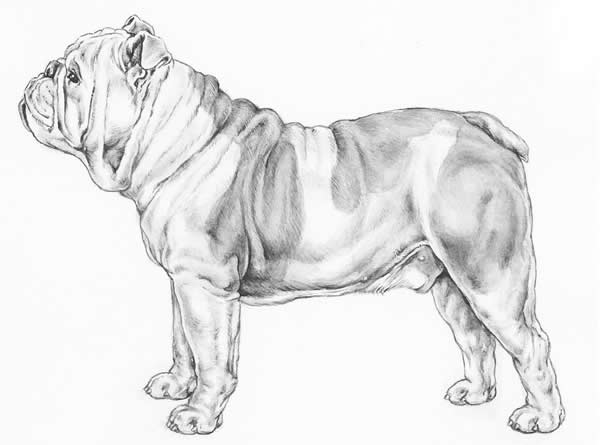 Cuello: De largo moderado, muy grueso, profundo y fuerte. Bien arqueado en la parte superior, con algo de piel suelta, gruesa y arrugada alrededor de la garganta formando una leve papada en cada costado.